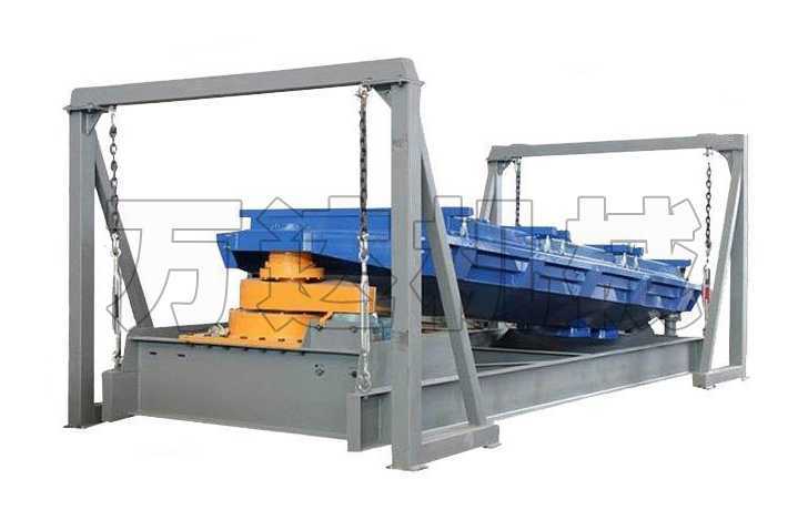 傾角為4-9度的篩箱由驅動箱傳動,其運動軌跡在進料端為水平圓運動,在長度方向上逐漸變成橢圓運動,最后在出料端變成近似往復直線運動。